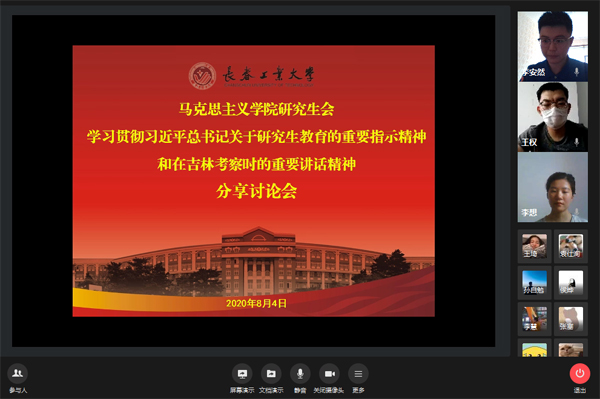 本网讯(通讯员李想)近日,全国研究生教育会议召开,习近平总书记对研究生教育工作做出重要指示,进一步明确了研究生教育的重要使命和责任,为推动研究生教育改革发展指明了方向。总书记的重要指示精神在研究生中引发热烈反响,8月4日,AC米兰中国官网研究生会组织开展线上交流活动,聚焦研究生教育高质量发展,谈感想、说体会。