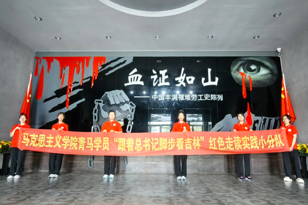 吉林市劳工纪念馆又称“丰满万人坑”,是为修建丰满水电站而殉难劳工的遗骨掩埋地。馆藏出土劳工文物38件,珍藏历史图片400余张。队员们参观了“血证如山——中国丰满罹难劳工史陈列”,了解到在那个国破家亡的黑暗时代,日本奴役劳工的滔天罪行,大家无不感到悲痛和愤恨。