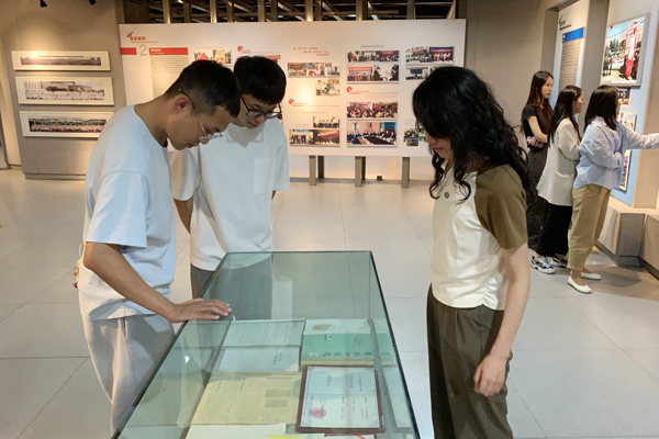 在讲解员的引领下,同学们通过一张张照片、一件件实物领略学校七十余年的发展历程,切身感受到学校深厚的历史积淀和文化底蕴,加深了对学校历史发展、办学成果、文脉传承的认识,同学们为前辈们艰苦创业、踏实奋斗和披荆斩棘、勇立潮头的精神所感动。