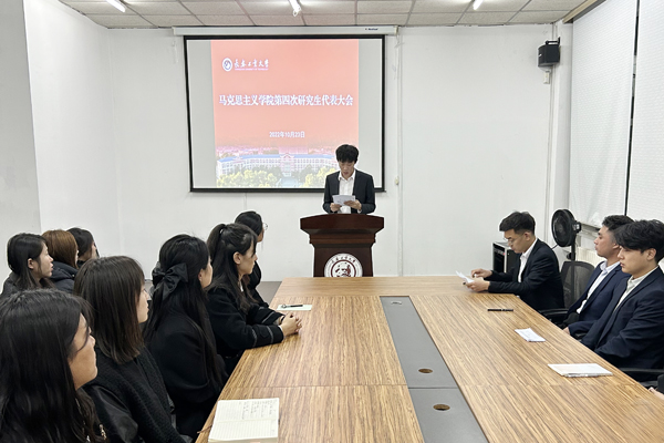 学院党委副书记王权出席会议,对大会的召开表示祝贺,对过去一年研究生会的工作给予高度肯定。第三次研究生代表大会召开以来,研究生会以全心全意服务同学为宗旨,团结带领全体同学,紧紧围绕学院中心工作,在思想政治引领、社会实践育人、校园文化建设、校园疫情防控等方面发挥了重要作用。他希望新一届研究生会要把牢“有理想”的首要标准、突出“敢担当”的时代要求、锤炼“能吃苦”的坚毅品格、弘扬“肯奋斗”的光荣传统,从严治会,在改革中服务广大同学,为学院和学校发展贡献智慧和力量。