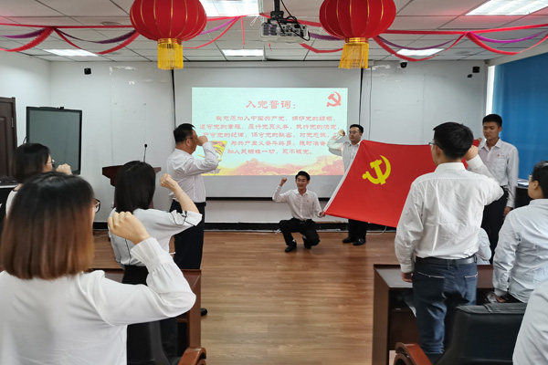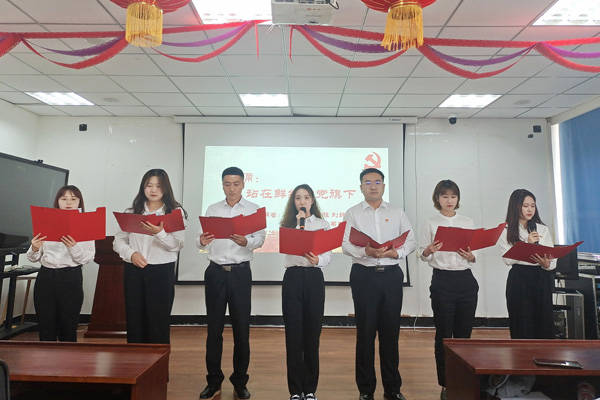 朗诵会结束后,举行了党员重温入党誓词活动。在学院党委书记朱兴国的领誓下,全体师生党员面向党旗,举起右拳,重温入党时的庄严承诺,不忘作为一名共产党员的初心和使命。