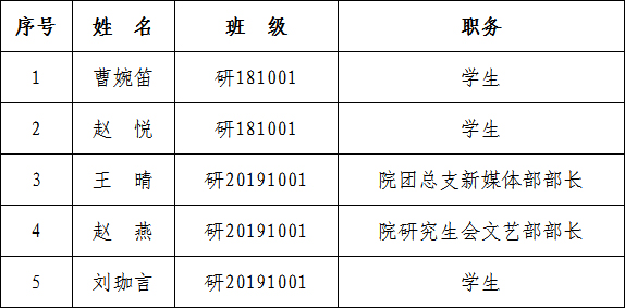为了认真贯彻党的发展党员工作方针,充分发扬民主,增加发展党员工作的透明度,把好发展党员质量关,确保新党员质量,经本学院党委研究,现将已列入2021年度发展计划,且通过党支部民主测评的发展对象在全院范围内公示。公示时间为5个工作日(2021年3月1日至2021年3月5日)。在公示期内,党内外群众如对发展对象有意见,请以真实单位、姓名,用书面、电话等形式如实反映情况。群众反映的问题可受到法律保护,我们将严格保密。