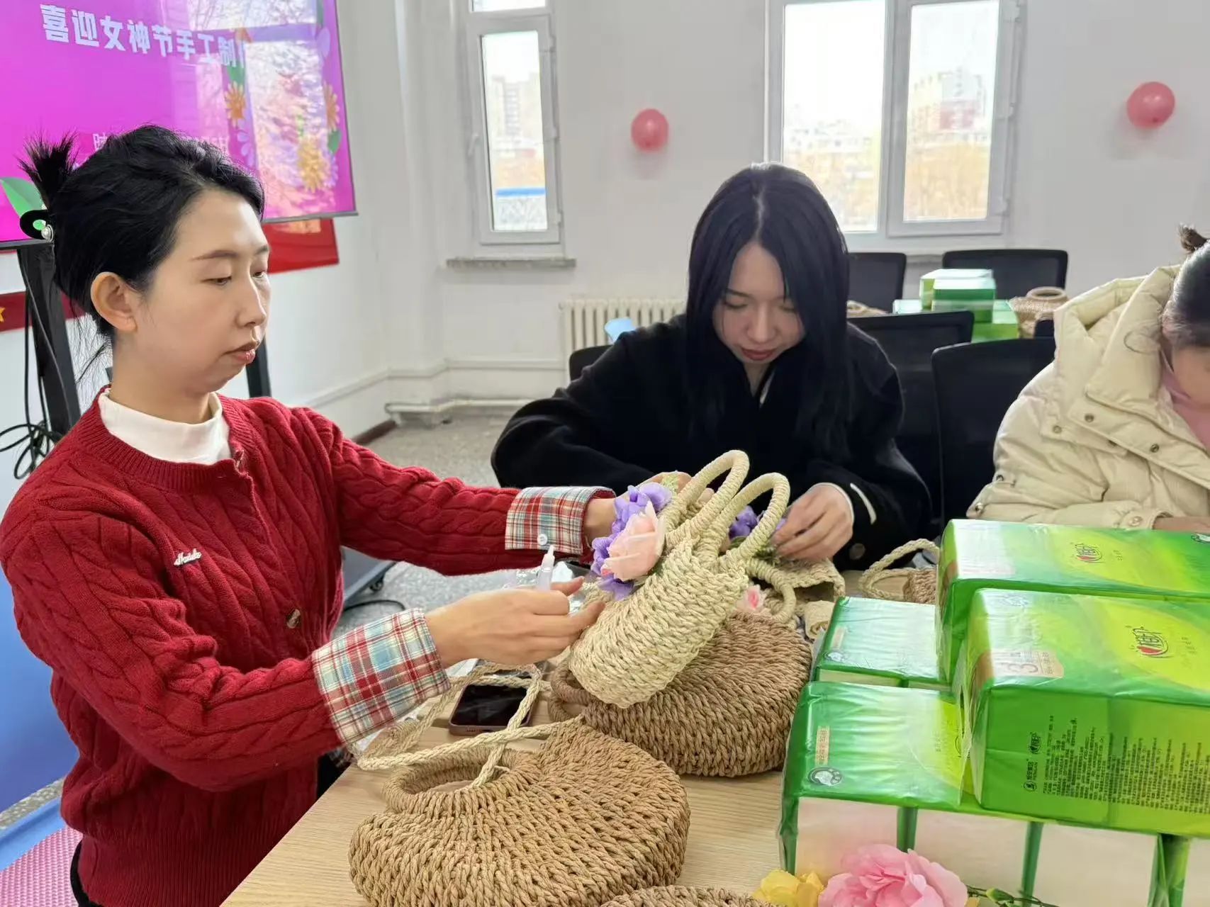 在第115个“三八”国际劳动妇女节来临之际,为丰富学院教职工精神文化生活,增强团队凝聚力,3月5日下午AC米兰中国官网在学院会议室开展“包揽春日,魅力巾帼”手工草编包DIY活动,全院教职工齐聚一堂,共度温馨且意义非凡的节日。
