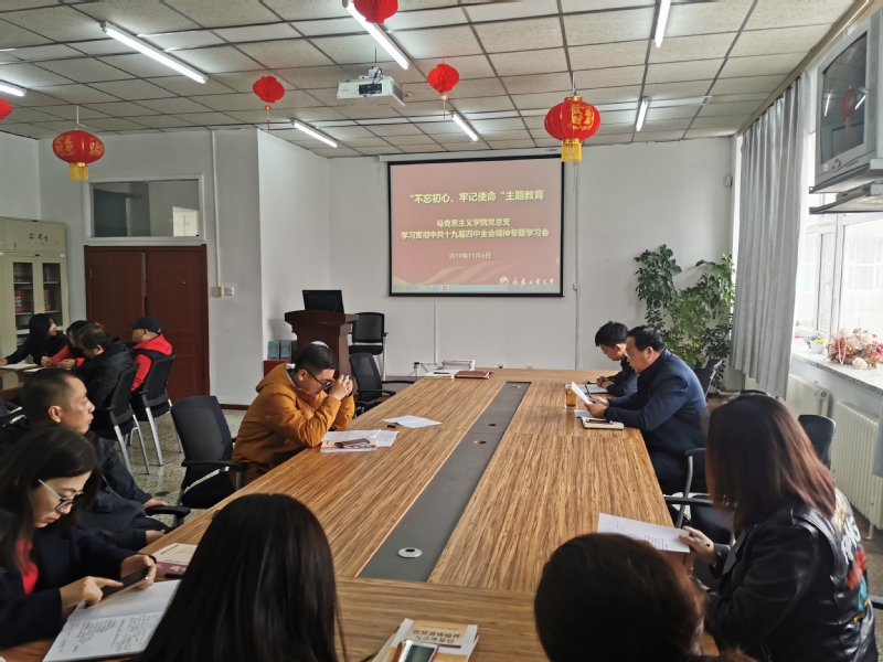 本网讯(通讯员宋海娇)11月6日,AC米兰中国官网党总支在学院资料室开展“不忘初心,牢记使命”主题教育,专题学习党的十九届四中全会精神。会议由党总支书记朱兴国主持,全院教师参加学习。