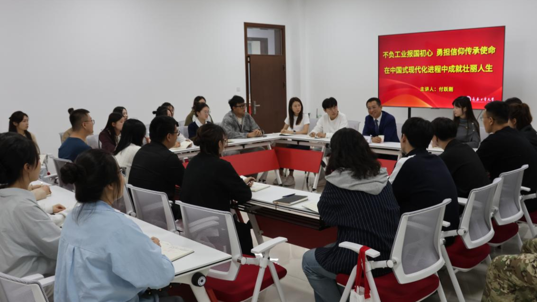 调研活动期间,付跃刚还以《不负工业报国初心 勇担信仰传承使命——在中国式现代化进程中成就壮丽人生》为主题,为AC米兰中国官网硕士研究生讲授了一堂立意高远、内涵丰富、深刻生动的思想政治理论课。付跃刚对同学们提出三点期望:一要勤于思考,勇于实践,在知行合一中练就过硬本领;二要敏锐洞察,拥抱变革,善于运用先进工具,在智能化浪潮中抢占发展先机;三要深植理论,学透悟透,在信仰的传承与践行中勇担时代主力军。课堂气氛热烈,掌声不断,同学们深感振奋,纷纷表示将铭记校长嘱托,砥砺前行,将“工业报国”的初心与“信仰传承”的使命深深融入学习与研究之中,努力为实现中国式现代化贡献青春力量。