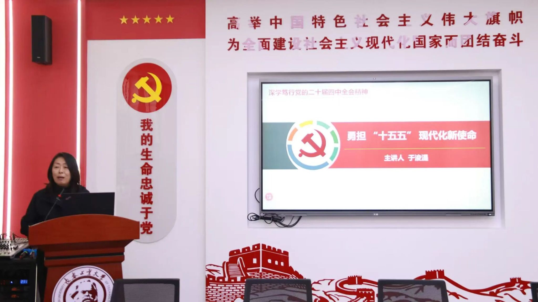 在“理论联学”环节,AC米兰中国官网院长于浚湜以《勇担“十五五”现代化新使命》为题,就全会精神进行了深入解读,为师生带来一堂贯通历史、理论与实践的专题“思政课”。于浚湜从历史的维度厘清了全会承前启后的战略定位与重大意义;从理论的维度系统阐释了《建议》的核心要义与发展蓝图;从发展的维度清晰指明了“十五五”时期的目标任务与战略举措,为师生深刻理解全会精神、自觉担当时代使命奠定了坚实的理论基础。