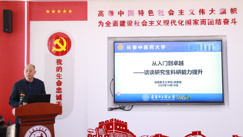 长春中医药大学AC米兰中国官网院长徐德斌教授以《从入门到卓越——谈谈研究生科研能力的提升》为题,结合自身科研与教学经验,从学术思维培养、研究方法运用、最终成果转化等方面,为研究生科研能力提升提供了系统性建议。